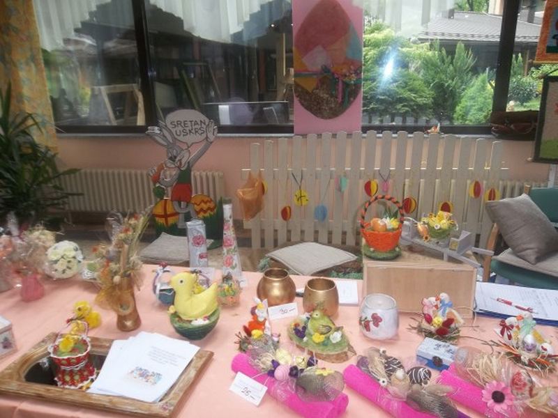 Povodom Uskrsa organiziramo prigodne promotivno prodajne izložbe radova bolesnika napravljenih kroz radno-okupacijsku terapiju.